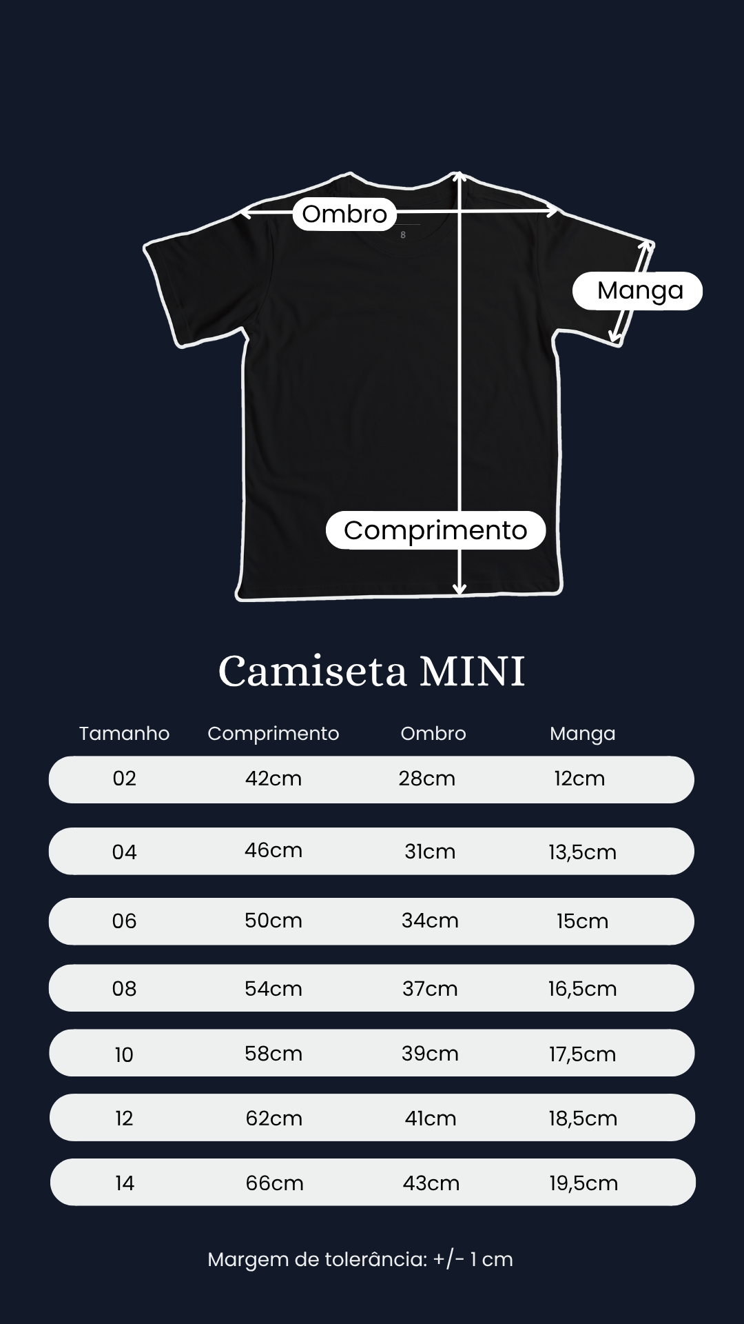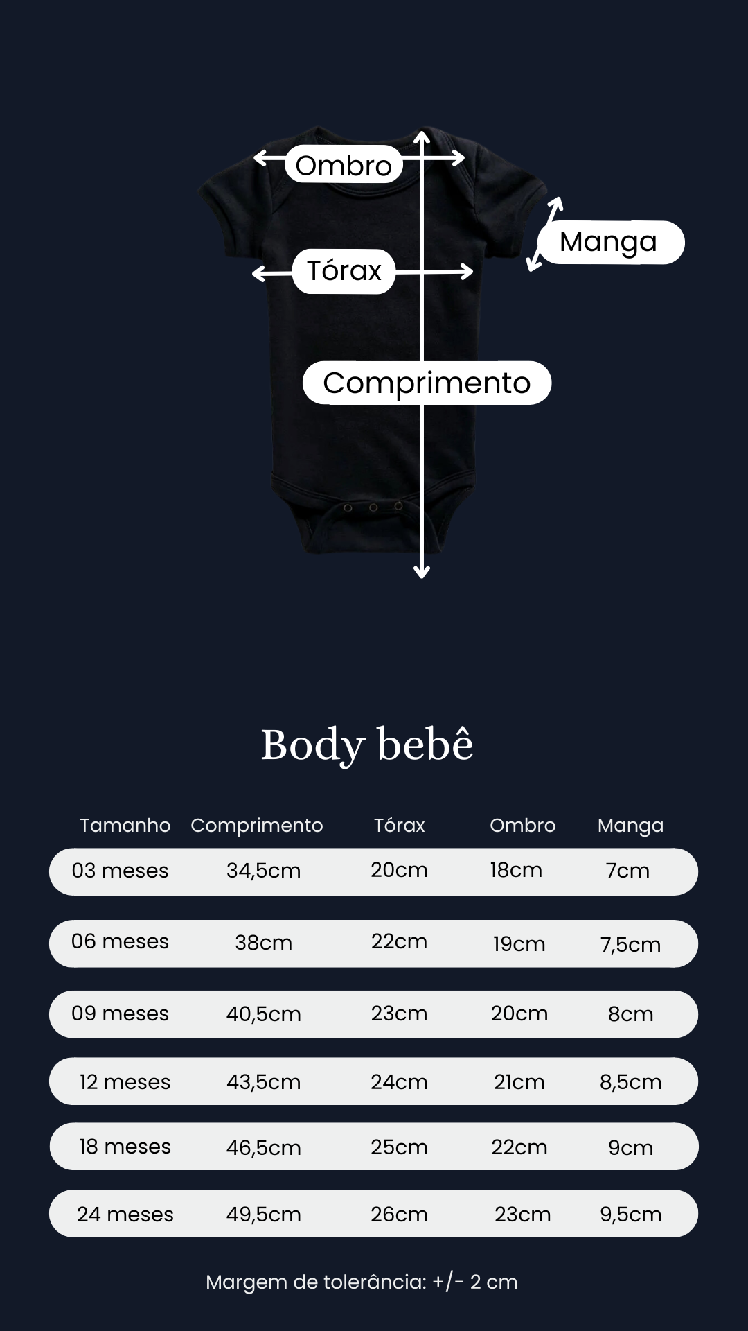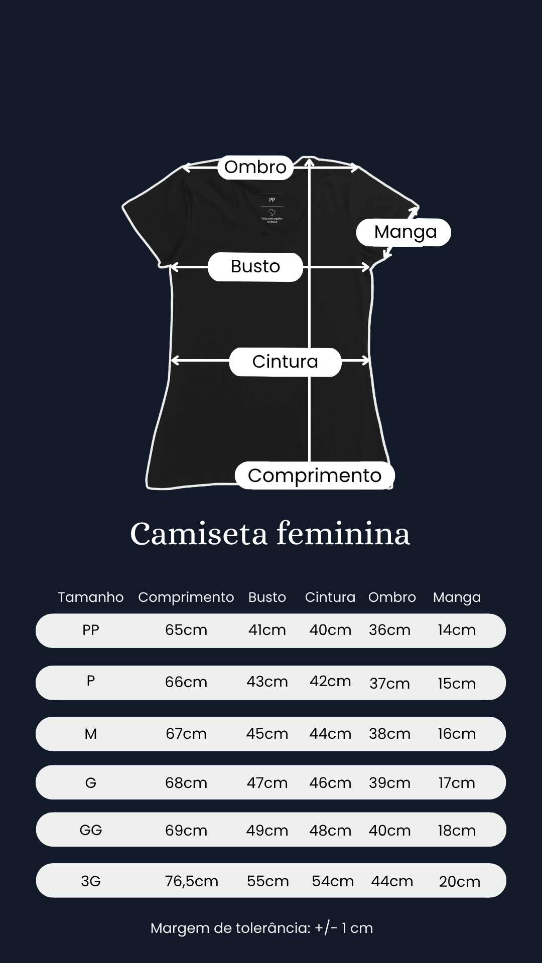 Verifique as medidas do produto abaixo para encontrar o tamanho perfeito. Em caso de dúvida, recomendamos a escolha do maior tamanho.