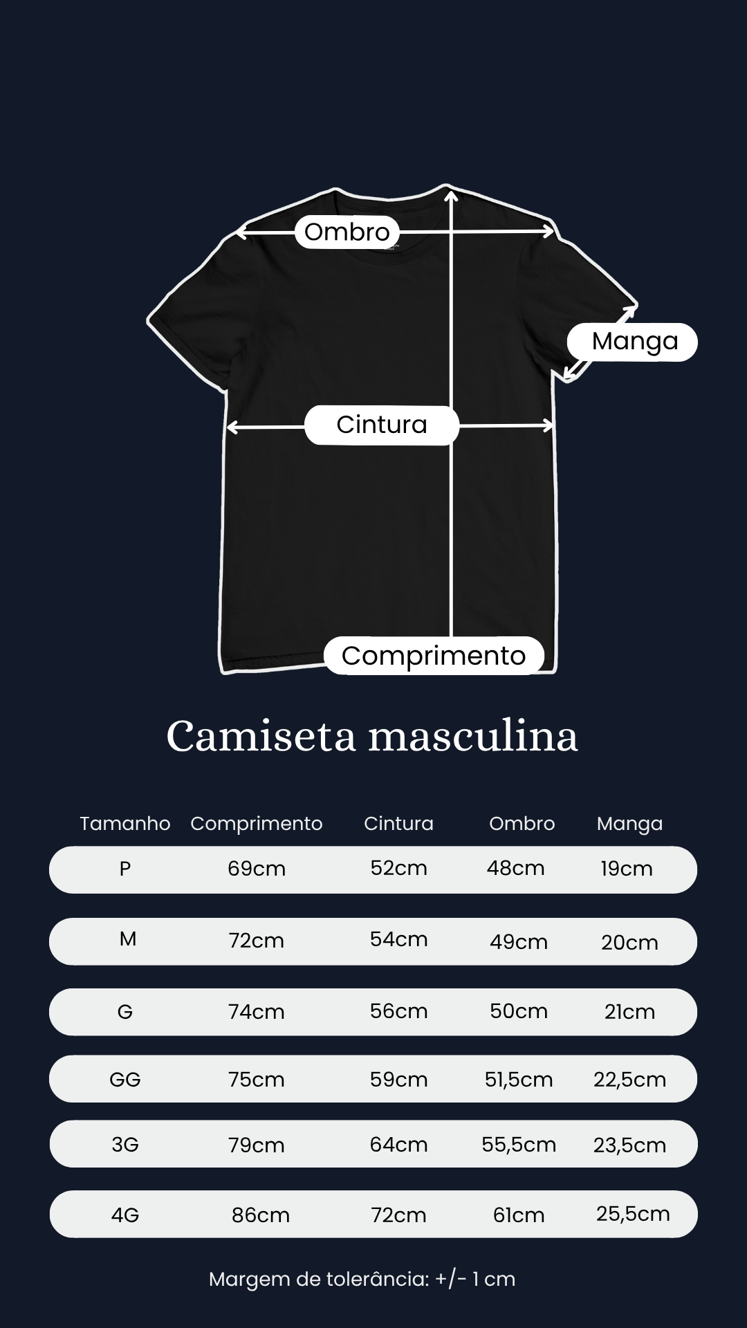 Nossas camisetas são produzidas pela Reserva Ink, trazendo toda a qualidade da mais alta tecnologia de impressão sob tecido disponível no mercado. A impressão digital, também conhecida como DTG, é feita diretamente no tecido.